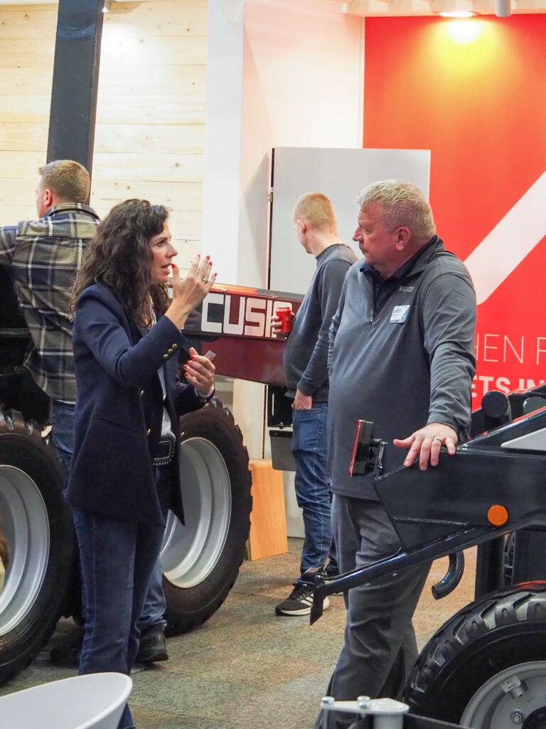 El MultiPack E14, nuestro manipulador de pacas, atrajo una atención constante. Los visitantes querían conocer experiencias reales de usuarios que ya trabajan con la máquina, y las pantallas del stand les permitieron ver su funcionamiento en condiciones reales. Entendieron rápidamente por qué es una solución tan versátil: trabaja tanto con pacas de dos como de tres cuerdas y se adapta con facilidad a distintos cultivos, empacadoras y situaciones de campo. También empezaron a valorar la ventaja de recibir pacas pequeñas agrupadas en un paquete compacto, lo que facilita su manipulación, transporte y almacenamiento.