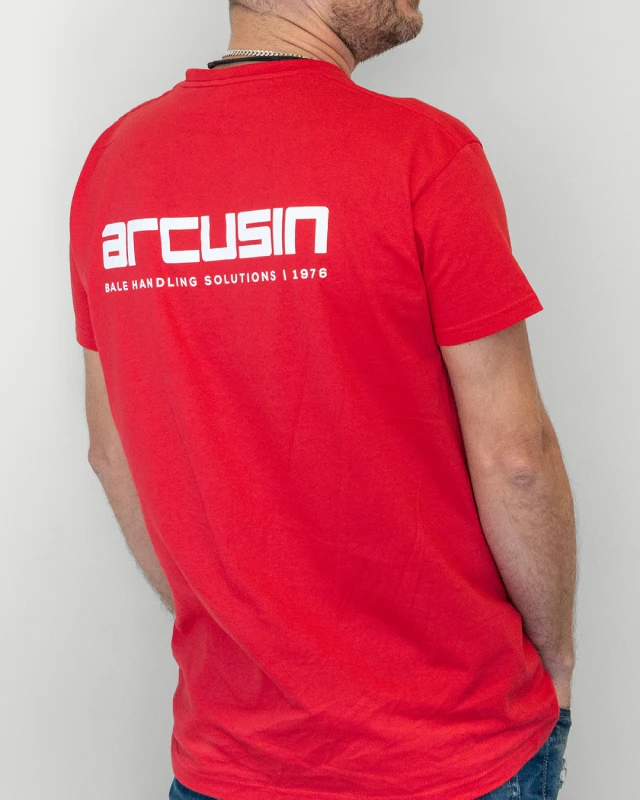 Хлопковая футболка унисекс свободного кроя с логотипом ARCUSIN, напечатанным спереди и сзади.